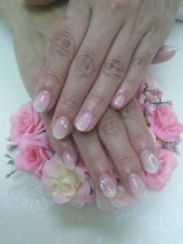 白のラメのグラデーションにストーンアートをいたしました(*^^*)