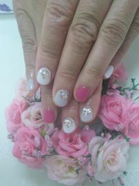 ピンクの全塗りにストーンを乗せました(*^^*)