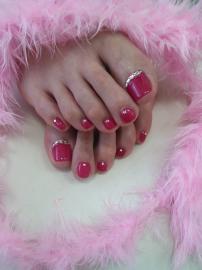 ピンクレッドカラーの全塗りにストーンを乗せました(*^^*)