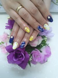イエロー、ネイビーの全塗りにポイントでパイナップルアートと