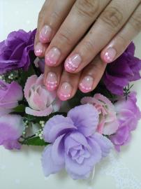ピンクの逆フレンチにラメラインを入れて