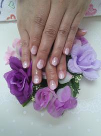 ピンクのフレンチにラメラインとポイントでストーンを乗せました(*^^*)