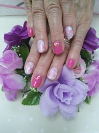 パールピンクの全塗りとスクエアフレンチにラメラインと