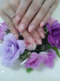 ピンクのグラデーションにラメを散りばめてストーンを乗せました(*^^*)