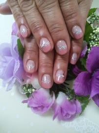 ピンクのグラデーションでシルバーラメを散りばめてストーンを乗せました(*^^*)