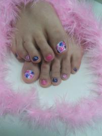 ピンク、ネイビー、白の全塗りにスタッズを乗せて