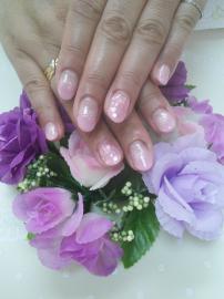 ピンクのグラデーションにラメを乗せて