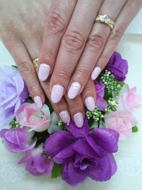 ピンクのスクエアフレンチと透け感のある白の