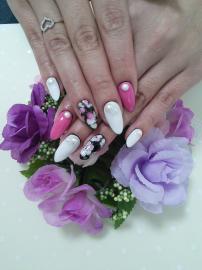 白とピンクの全塗りにフラワーアートをして