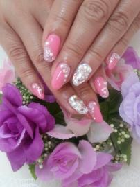 ピンクの全塗りにポイントでストーンの埋めつくしアートをいたしました(*^^*)