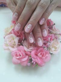 ピンクの逆フレンチにラメラインとポイントでストーンを乗せました(*^^*)