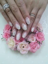 ジェルで長さを出して、ベージュのグラデーションで
