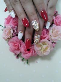ジェルで長さを出して、赤と白の全塗り、