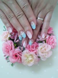 マカロンピンクとブルーの逆フレンチに