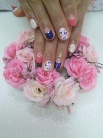 ピンク、ネイビー、白の逆フレンチに