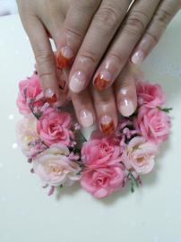 オレンジのラメのグラデーションでキラキラネイルにいたしました(*^^*)