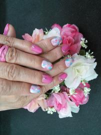 ピンクの全塗りにタイダイ柄のアートをしました(*^^*)