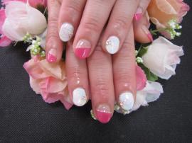 2色のピンクのカラーにハートのアートを・・・(*^_^*)