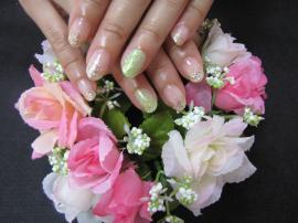 ポイントでグリーンのラメを入れました(*^_^*)