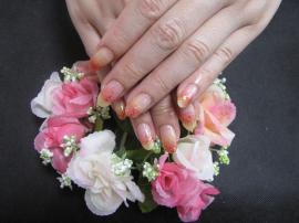 本日はベージュピンク系の淡いカラーの逆フレンチに