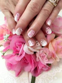 白のグラデーションにラメとポイントでお花のホロを乗せました(*^^*)