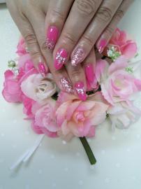 ピンクの全塗りとピンクのラメの全塗りにストーンアートをいたしました(*^^*)
