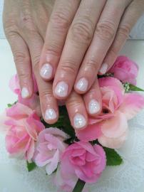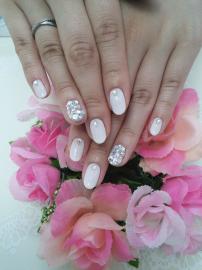 オフホワイトの全塗りにポイントでストーン埋めつくしアートをいたしました(*^^*)