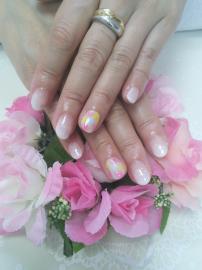 ホワイトヨーグルトのグラデーションに白ラメとポイントでタイダイアートをいたしました(*^^*)