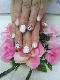 イエロー、白の逆フレンチにフラワーアートをいたしました(*^^*)