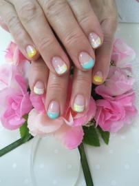 ピンク&グリーンのフレンチにラメラインと