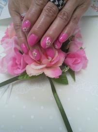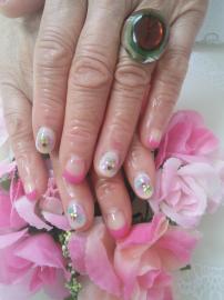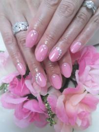 ピンクの全塗りにストーンを乗せました(*^^*)