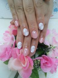 グレージュとピンクベージュの全塗りにフラワーアートとストーンを乗せました(*^^*)