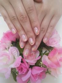 ピンクのフレンチにゴールドのラメラインでシンプルにいたしました(*^^*)