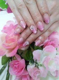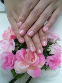 ピンクのフレンチにラメライン&ストーンを乗せました(*^^*)