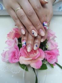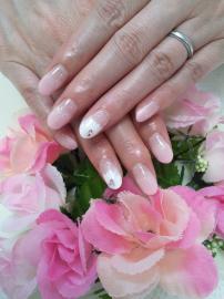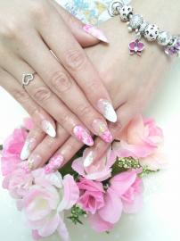 ピンクのグラデーションにポイントでお花のアートをいたしました(*^^*)