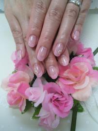 ピンクのフレンチにラメラインを入れて
