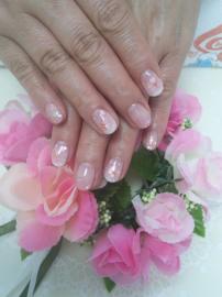 ピンクベージュのグラデーションにポイントでストーンを乗せました(*^^*)