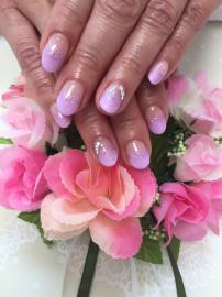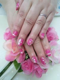 ピンクの全塗りにラメとホロのお花を乗せました(*^^*)