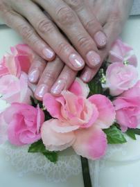 ピンクのラメグラデーションにポイントでパールを乗せました(*^^*)