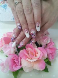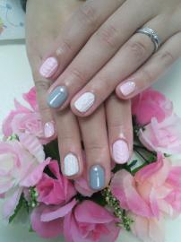 ピンク、アイボリー、グレーの全塗りにポイントでニットアートをいたしました(*^^*)