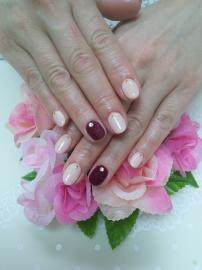 ベージュの逆フレンチにポイントでドットアートをいたしました(*^^*)
