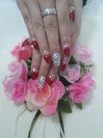赤の斜めフレンチにラメラインとポイントでストーンの埋めつくしをいたしました(*^^*)