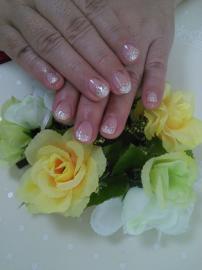 ピンクのグラデーションにラメをかけて