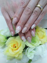 ベージュのフレンチとポイントで白の囲みアートに