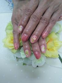 ピンクのフレンチとラメ入りピンクの全塗りに