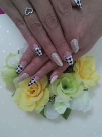 千鳥格子のアートにポイントでゴールドラメを入れました(*^^*)