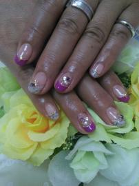 パープルのフレンチにポイントで大理石柄のアートをいたしました(*^^*)