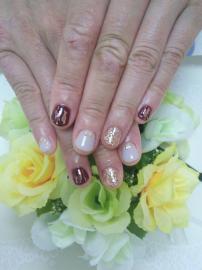 ボルドー&グレージュのカラーにポイントでゴールドラメ