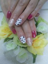 パープルピンクの全塗りにポイントでダルメシアン柄に