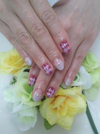 ピンク、白の変形フレンチにポイントでツイードアートいたしました(*^^*)